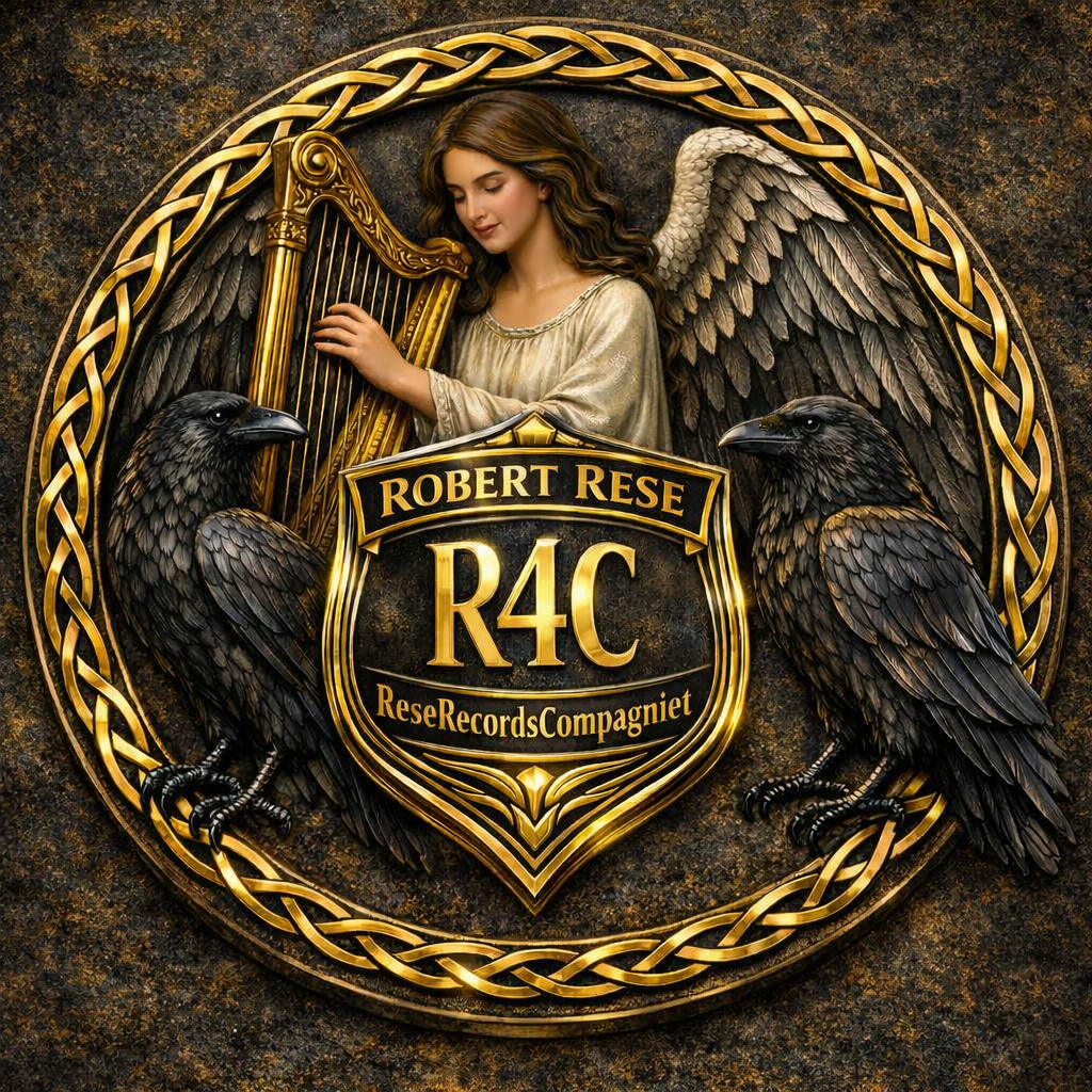 R4C står for Robert Rese, Rese Records Compagniet. 4, R` rer og 1, C. Leser du rett frem er ordlyden air force, der av den harpespillende engelen i logoen. Sammen med ravnene Hugin og Munin.