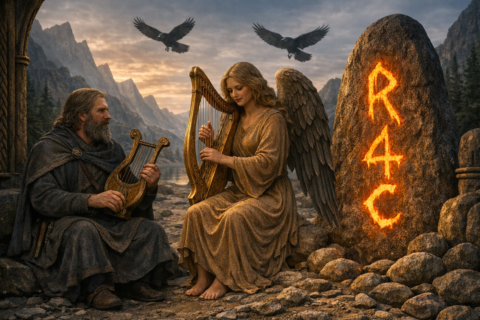 På bilde er den Norrøne guden Brage som stod for skaldekunst, poesi, diktning og veltalenhet.